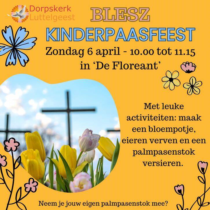 Voor de kinderen is er tijdens de overdenking kindernevendienst. De dienst van zondag 13 april begint om 9.30 uur. Ook hier is iedereen van harte welkom!